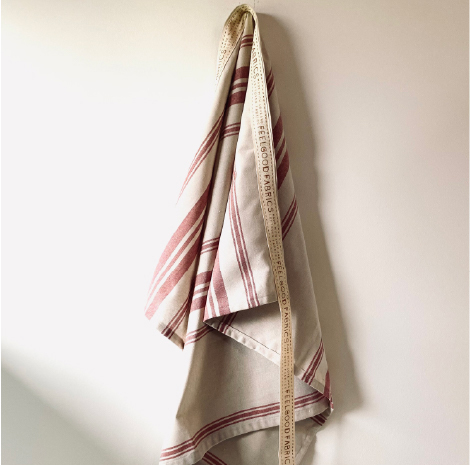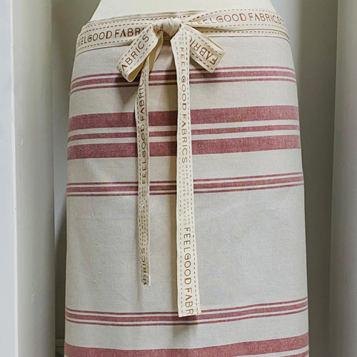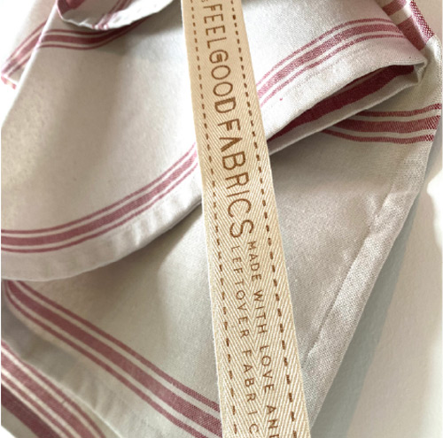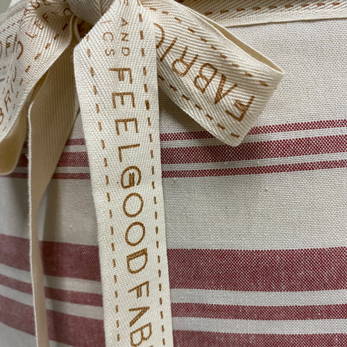 What about this beautiful apron with subtle bordeaux stripep? Beautiful in it’s simplicity, but super praktical; it ’s very wide, will always fit and will protect your Christmas outfit! Guarantee for succes, especially beacause of the beautiful FeelGood logo-band!